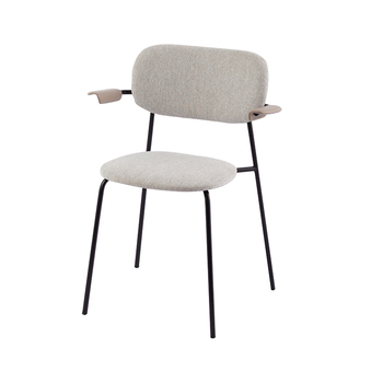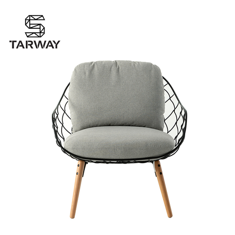 Silla de comedor de hierro forjado, asiento tapizado de lino, color negro, gris claro, para Hotel y restaurante